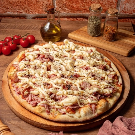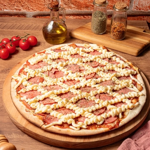 A pizza gigante é perfeita para compartilhar momentos especiais com amigos e familiares. Feita com ingredientes frescos... Ver completo