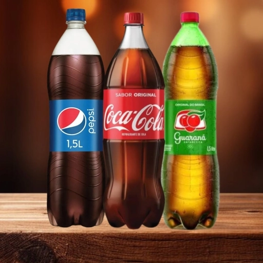 2 Pizzas gigante ( 12 fatias) + 1 pizza pequena doce (4 fatias) + 2 refrigerantes 1,5l